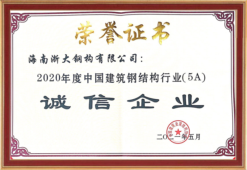 2020年度中國(guó)建筑鋼構(gòu)行業(yè)(5A)誠(chéng)信企業(yè)